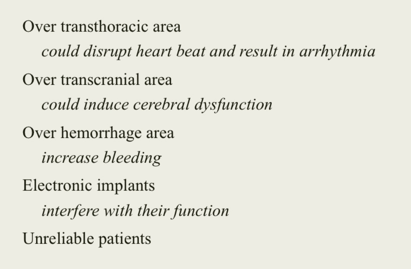 Abdomen, pelvic, lumbar region of pregnant woman (induces labor + affect fetal development)
