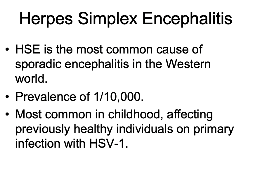 Most common in childhood – affecting previously healthy individuals on primary infection with HSV-1