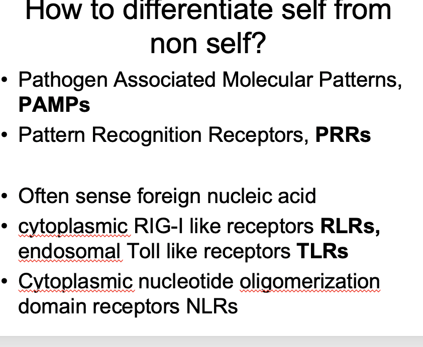 PAMPs (pathogen-associated molecular patterns) NOTE: they often sense nucleic acids