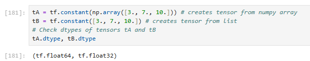 tA = tf.constant(np.array([3., 7., 10.]))tB = tf.constant([3., 7., 10.])
