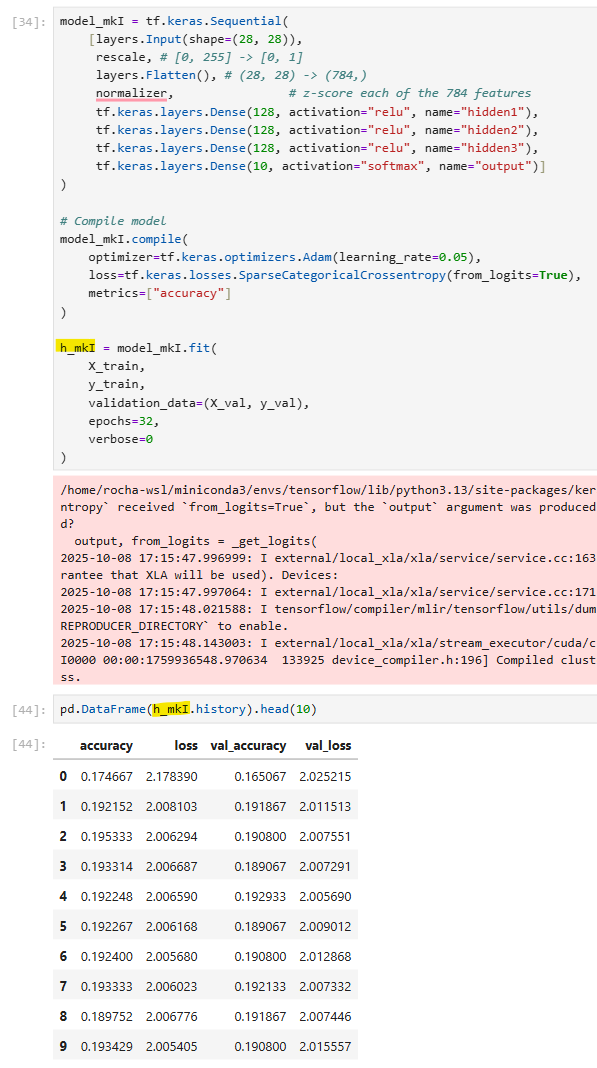 It’s a tiny change to the code that provided great value in return: h1 = model.fit()