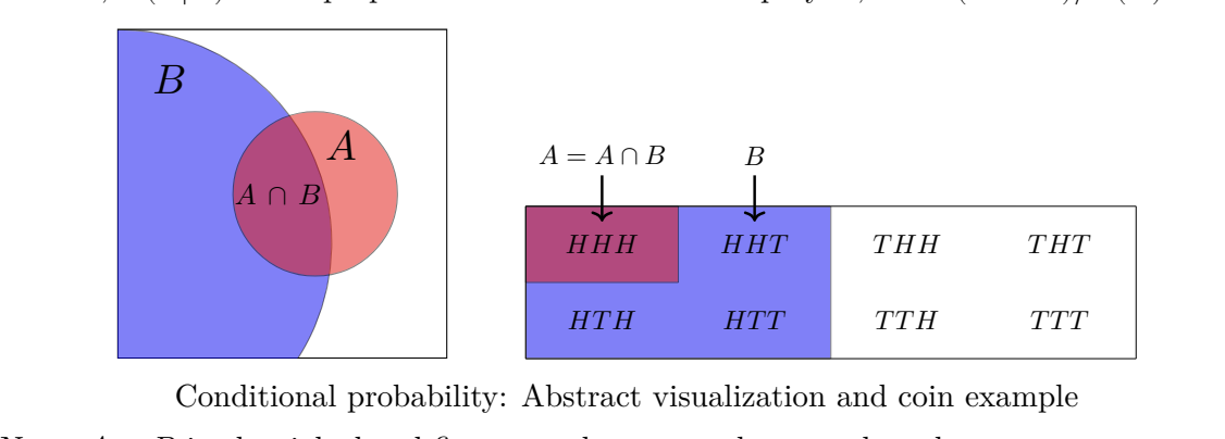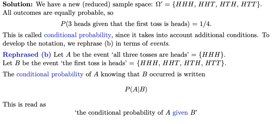 Now, π»1 = {HHH, HHT, HTH, HTT} contains exactly two outcomes (π»π»π , π»π π») from π΄, so we have π(π΄|π»1) = 2/4.