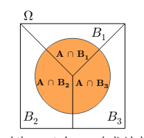Suppose the sample space Ξ© is divided into 3 disjoint events π΅1, π΅2, π΅3 (see the figure
