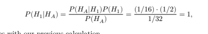 The terms are π(π»π΄|π»1) = 1/16, π(π»1) = 1/2, π(π»π΄) = 1/32.
