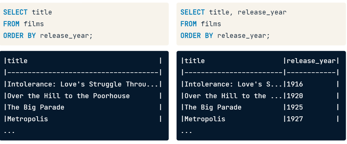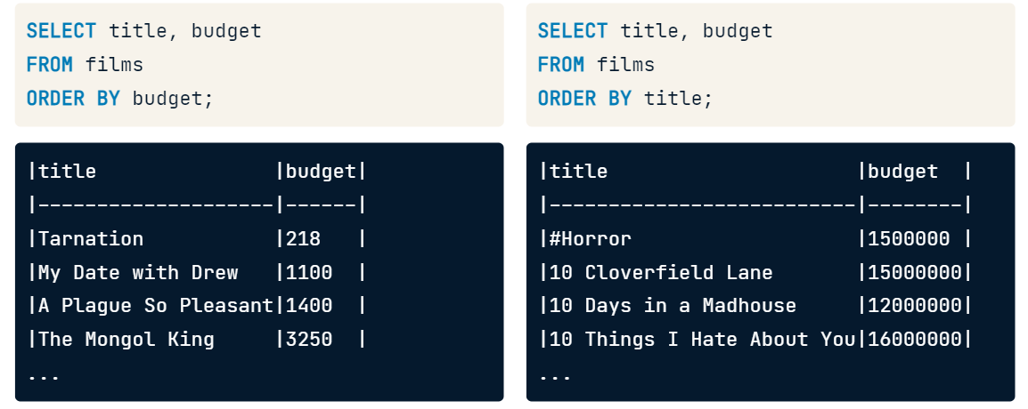 True - Here is an example query without ORDER BY, and this is the same query with ordering added.