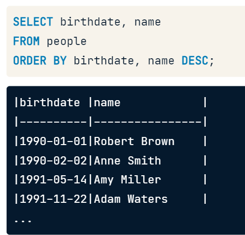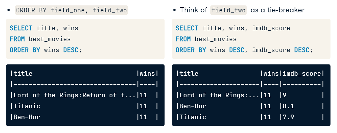 If we are using ORDER BY on two fields and are getting a tie we can break that tie by adding what?