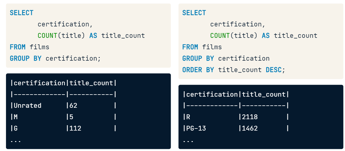 True/False - We can combine GROUP BY with ORDER BY to group our results, make a calculation, and then order our results.