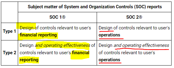TYPE 1 and TYPE 2 of SOC 1 and SOC 2