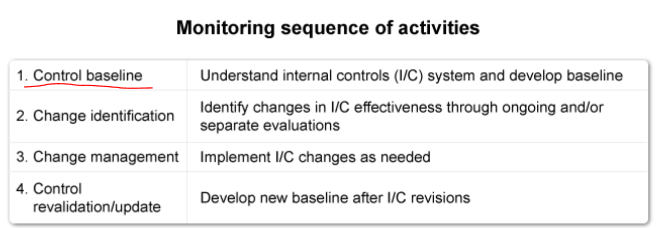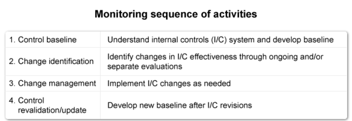Monitoring is one of the 5 components of the COSO Framework. Effective monitoring for change consists of 4 steps