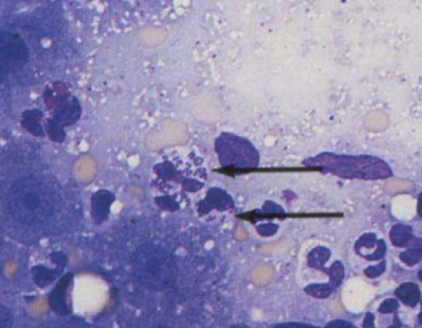 Hepatocytes infiltrated with neutrophils and maybe bacteria indicate