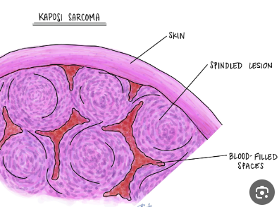 differentiate by biopsy- Kaposki- lymphocyte, Bacillary- PMN