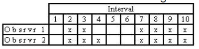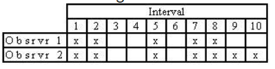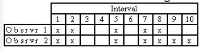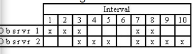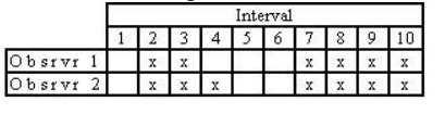 Which is the correct interval-by-interval calculation of interobserver agreement?