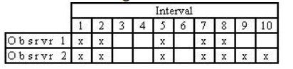 Which is the correct occurrence (scored interval) calculation of interobserver aqgreement?