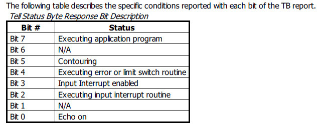 1. The TB command returns status infomation from the controller as a decimal number.