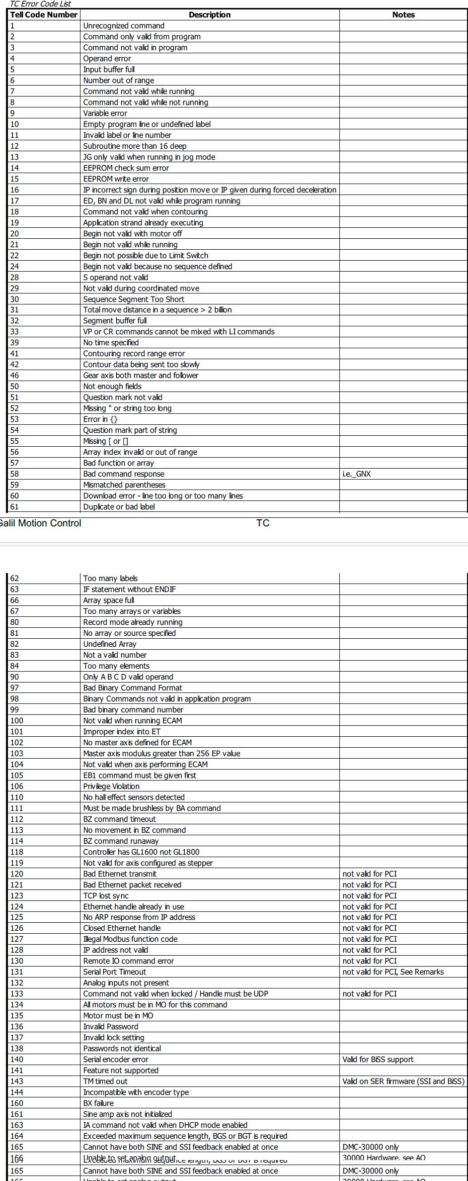 2. The TC command returns a number between 1 and 255. This number is a code that reflects why a command was not accepted by the controller.