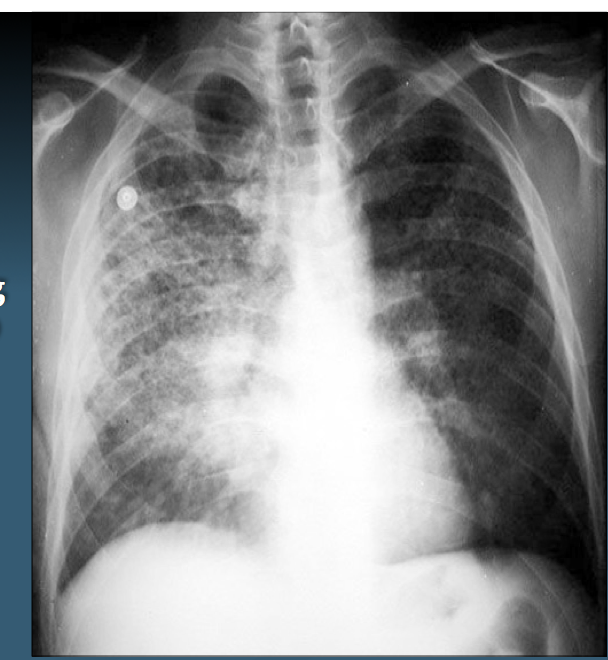 (sxs include cough, chest discomfort, +/- hemoptysis, dyspnea, fatigue, malaise, weakness)