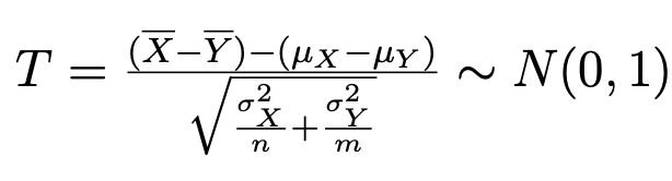 Give the test statistic needed to construct a (1-α) confidence interval for the difference in means between two independent normal distributions and where we know the variance