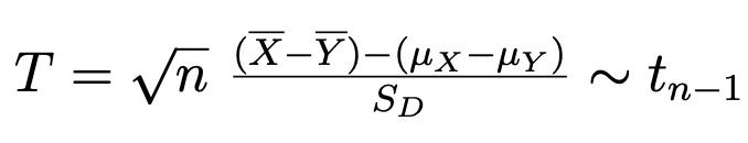 Give the test statistic needed to construct a (1-α) confidence interval for the difference in means where we have one sample of pairs