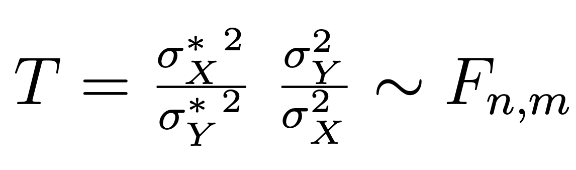 Give the test statistic needed to work out the confidence interval for the ratio of variances from two normal populations when the samples are independent and we don’t know the means