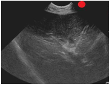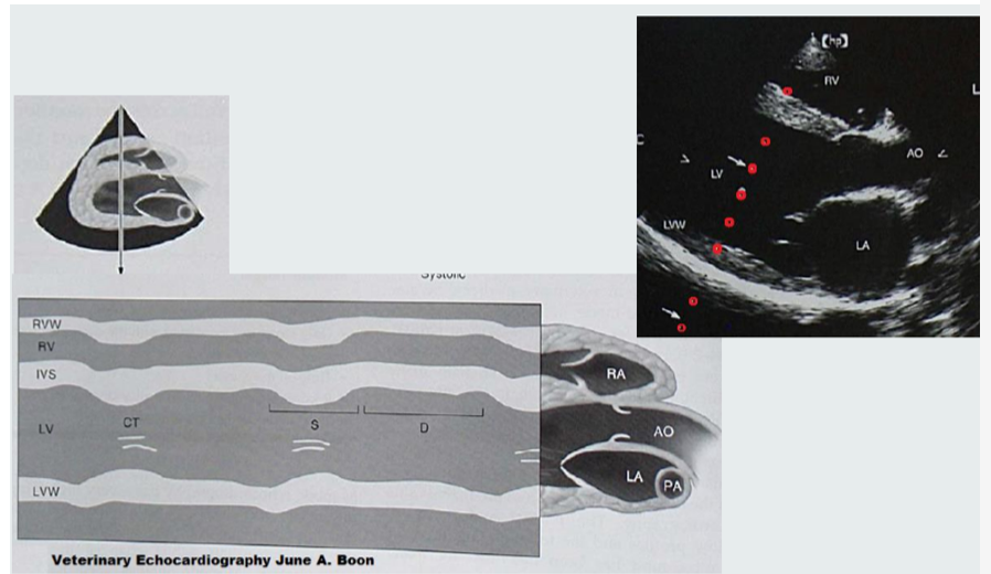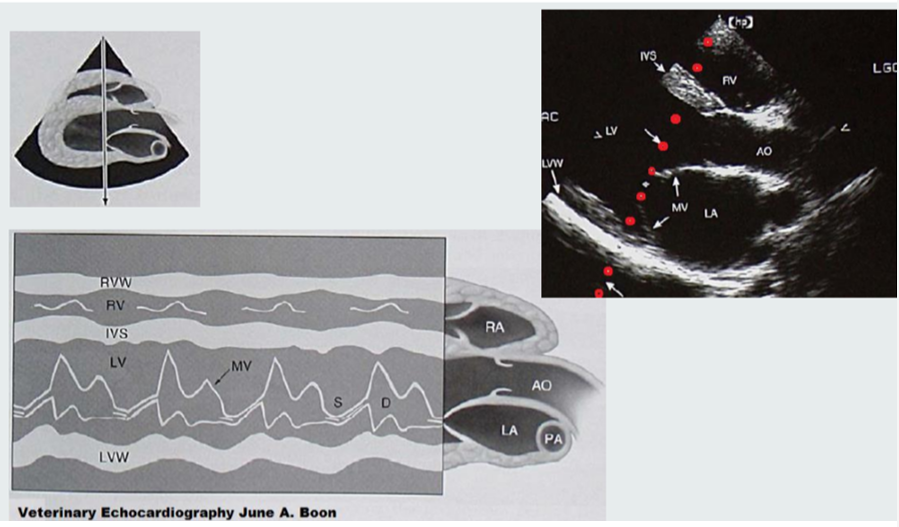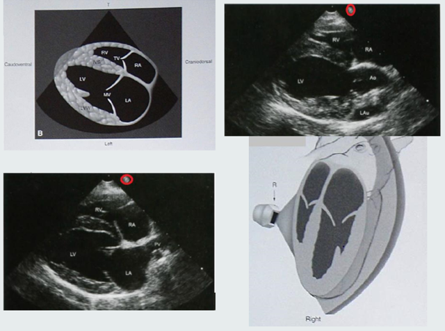 (Short axis uses the same basic position as for the long axis view but rotate the transducer 90° towards the animals sternum.)