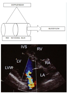 In Color Flow Doppler Imaging the velocity and direction of blood flows are depicted in a color map superimposed on the B-mode image.