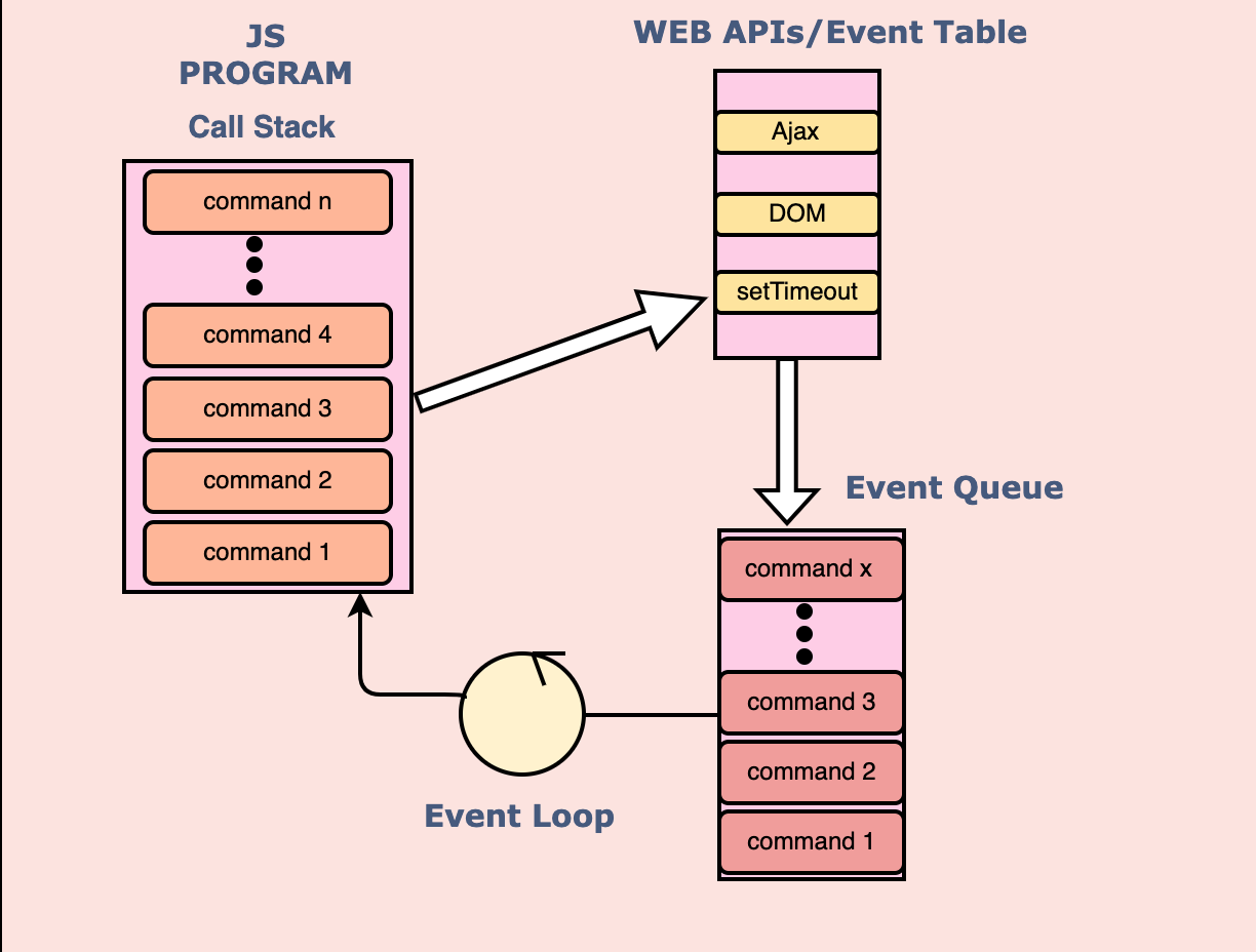 The purpose of a call stack is to keep track of all the function calls. Whenever we invoke a function, it is pushed into the call stack first. Once it finishes execution, it gets popped. However, if an asynchronous command enters the call stack, it is popped and added into the task queue, also known as the event queue. Such asynchronous commands include Web Apis callbacks. When the call stack encounters them, it pops them and they enter the task queue instead. The call stack processes these commands once all other commands finish execution, and it is empty.