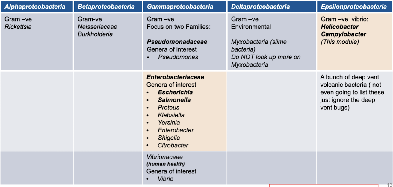 list division of proteobacteria and genera withinneach division