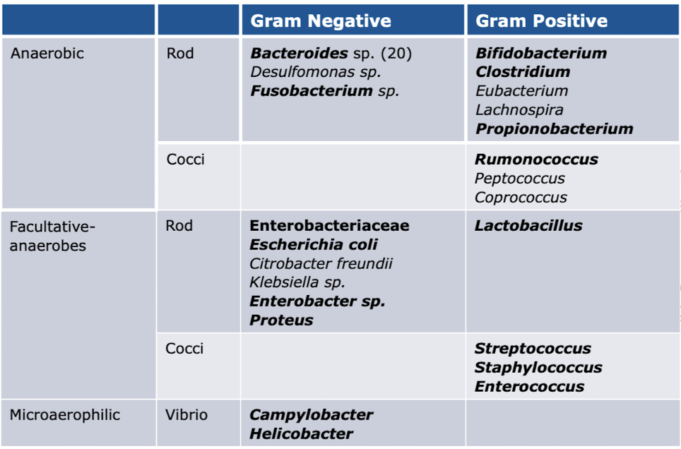 list common genera of bacteria found in the GIT