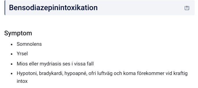 Ange minst 4 st symtom/tecken på benzodiazepinintox