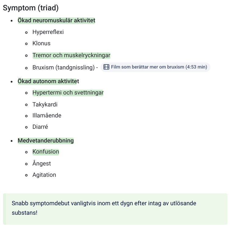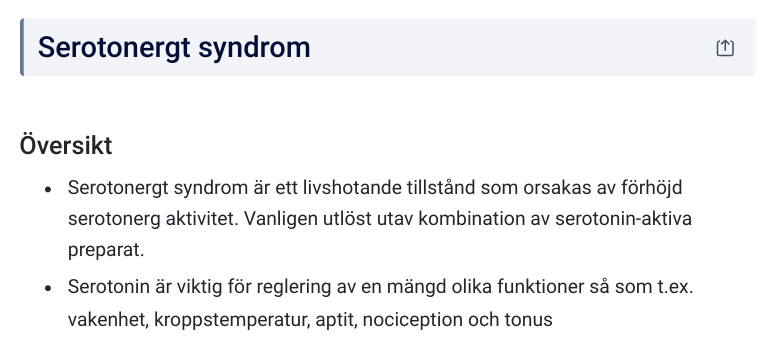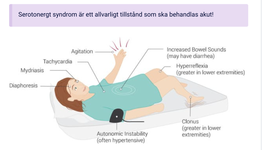 Serotonergt syndrom kännetecknas av en triad: Ökad neuromuskulär aktivitet, ökad autonom aktivitet och medvetanderubbning