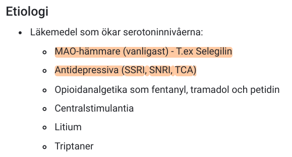 Ange minst 3 st lm som ökar nivåerna serotonin (och därmed kan ge serotonergt syndrom)?