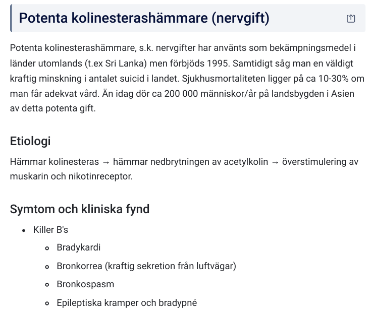 Behandling av nervgift med potentan kolinesterashämmare?
