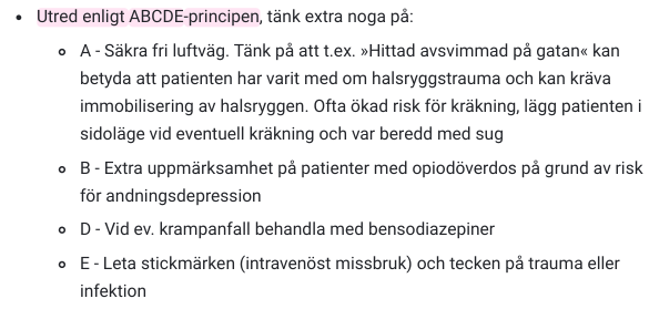 Vad bör du tänka på under ABCDE vid en intox?