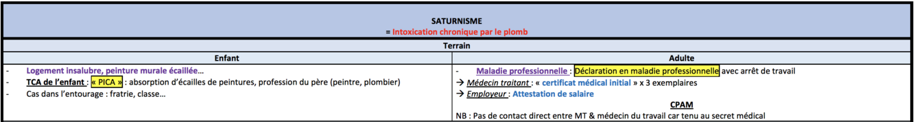 Saturnisme : TTT