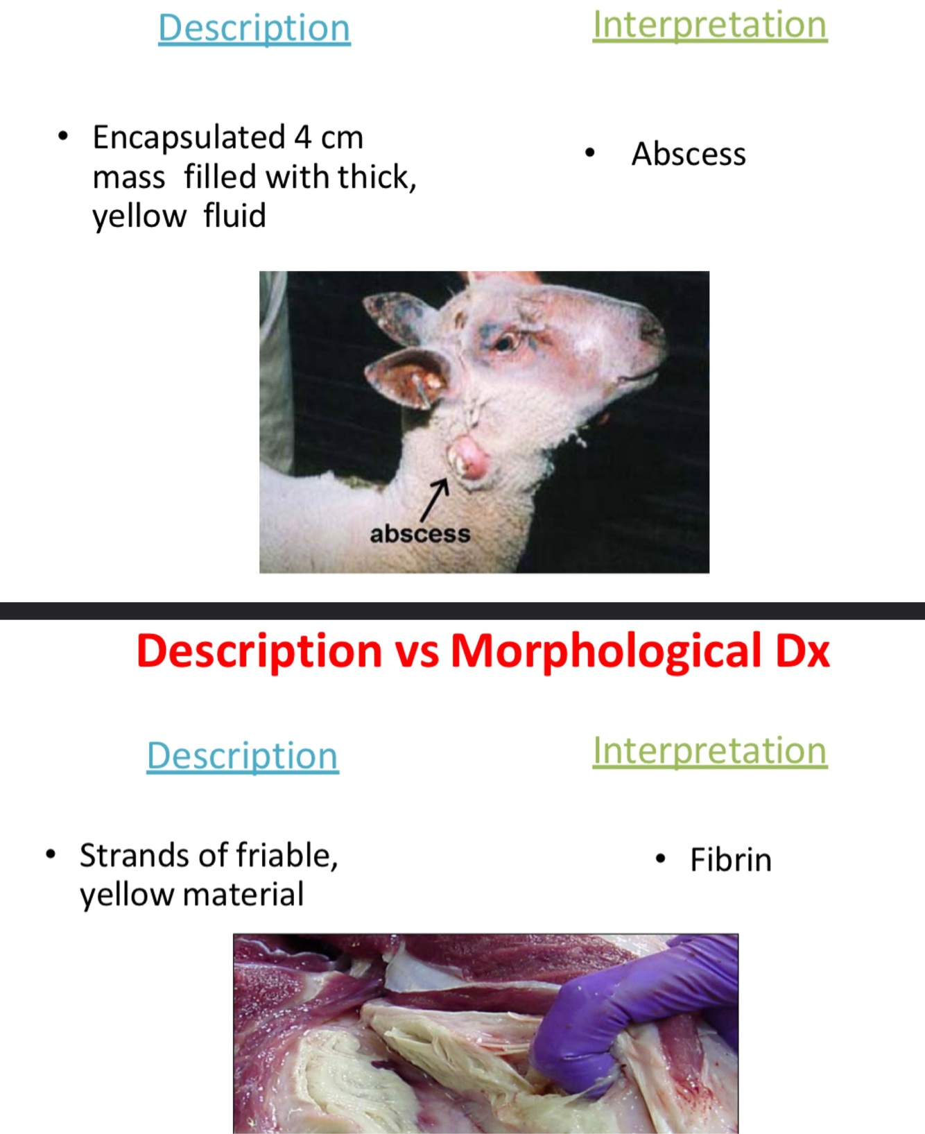 Describe description VS morphological Dx.