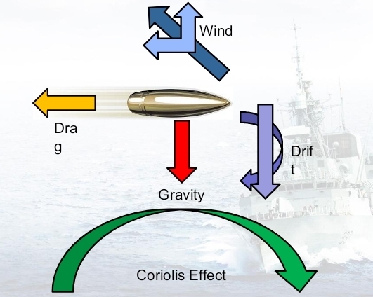 “A number of natural phenomena that tend to cause a weapon in flight to change direction, velocity, or both.”
