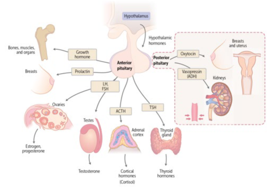 Which hormones are released from the anterior pituitary?