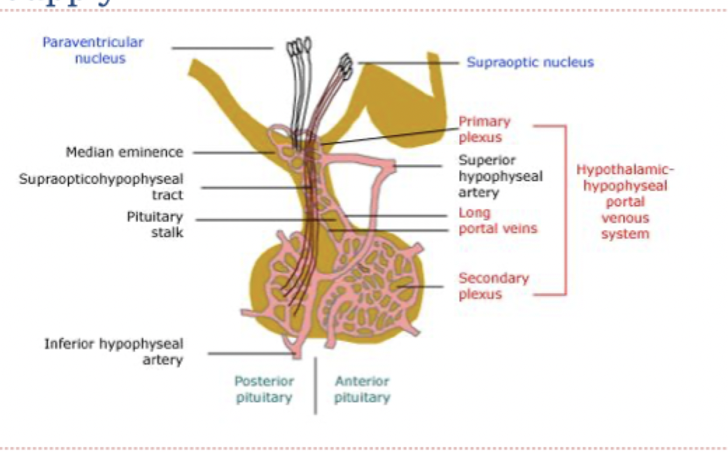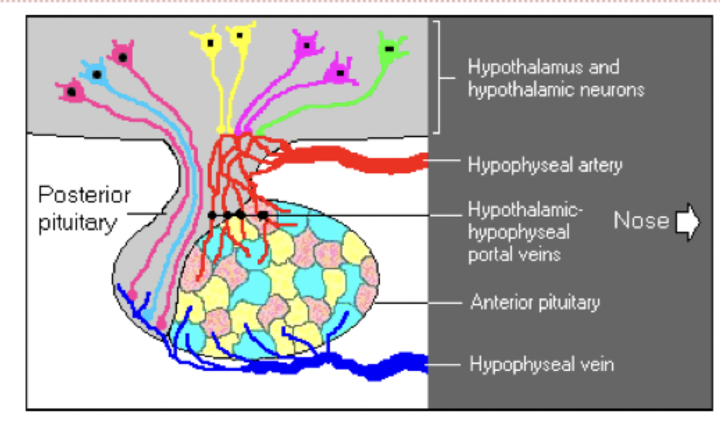 -portal vascular system: blood vessels connect hypothalamus and anterior pituitary