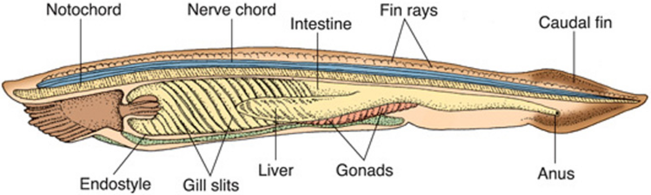 Marine invertebrate chordates that have all 5 chordate traits throughout their life and are commonly used in diagrams because of this?