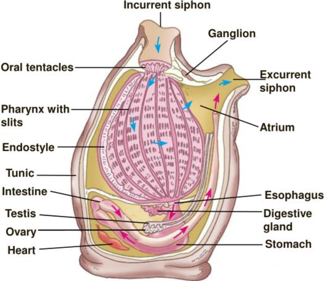Marine invertebrate chordates that do not retain all chordate traits at once and generally only keep the pharyngeal slits and endostyle?