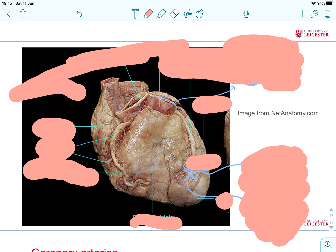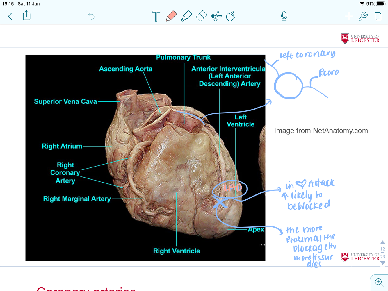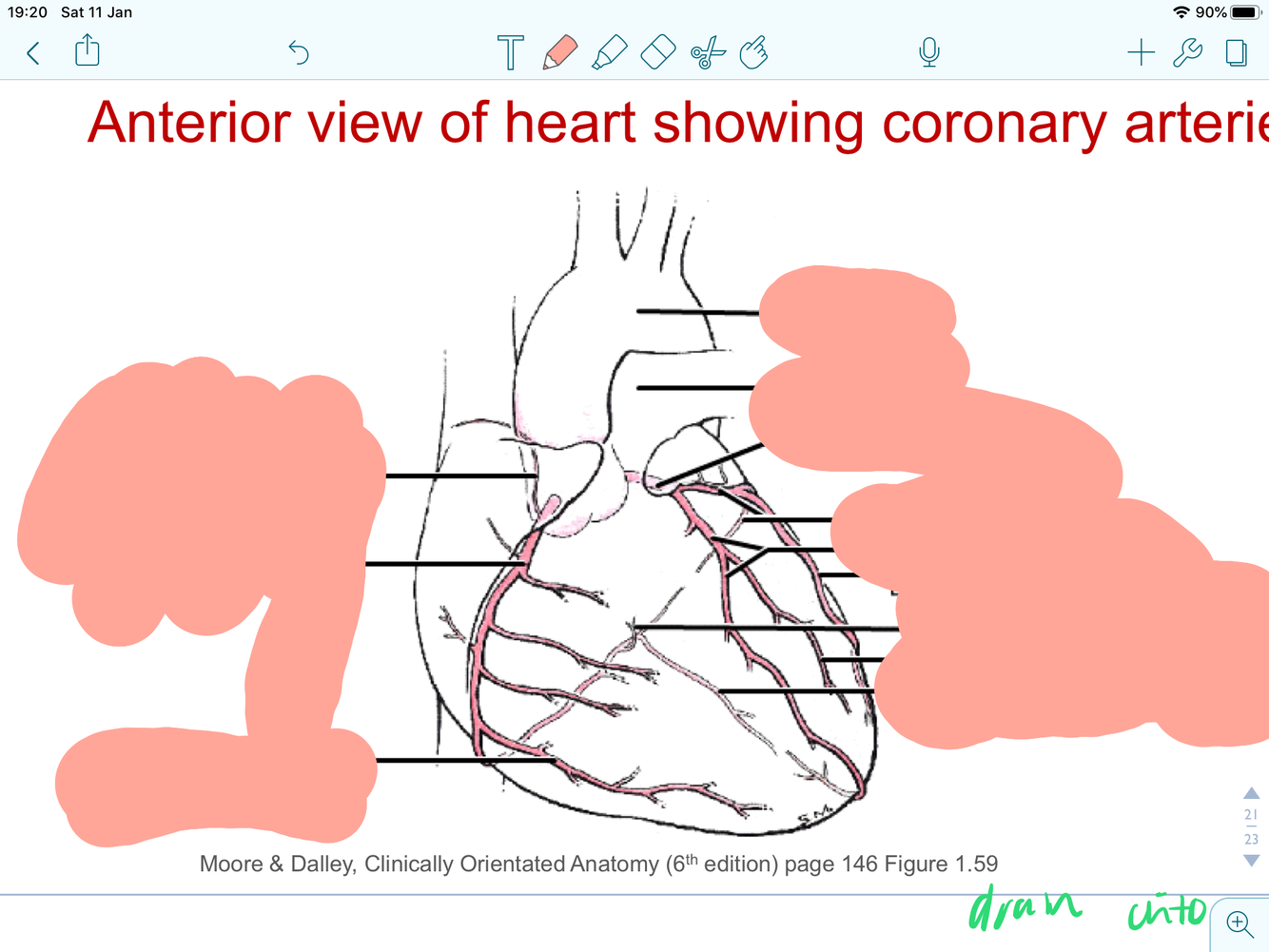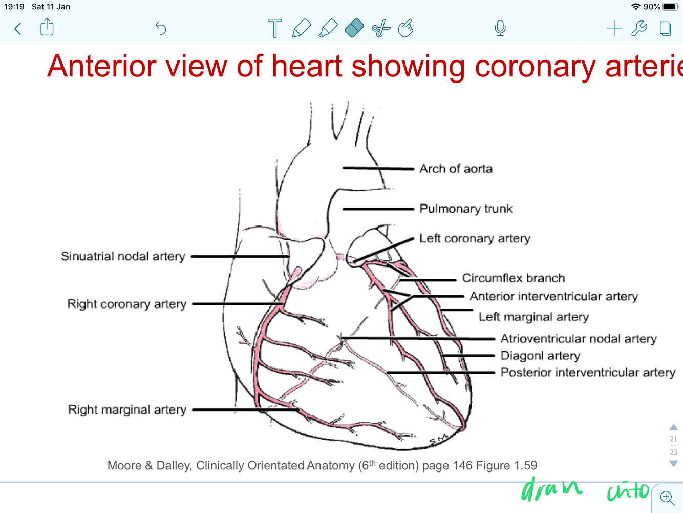 label this heart and where do coronary heart arise and drain into ?