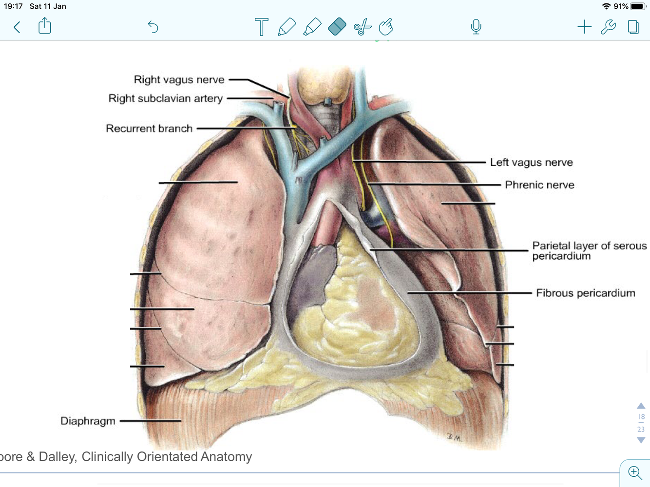 what are the nerves that can be seen in the DR in heart dsisection