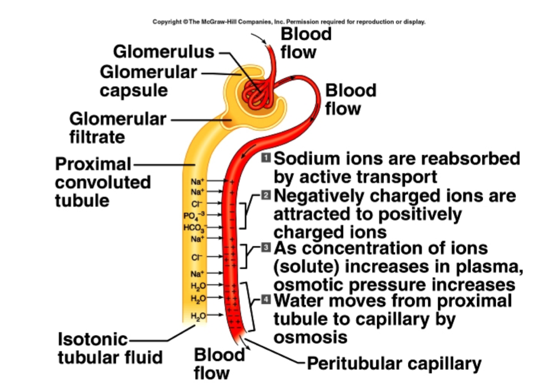 Modified by reabsorption (retrieval) of important solutes (sodium, salts, glucose, AAs) and most water from lumen of the tubules back into the peritubular capillary blood
