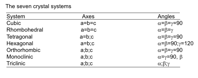 Crystals can be considered as a regular array of atoms. What are the 7 basic crystal structures?