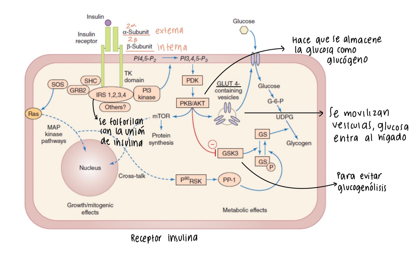 Transporte de glucosa en tejido adiposo y músculo, síntesis de glucógeno.