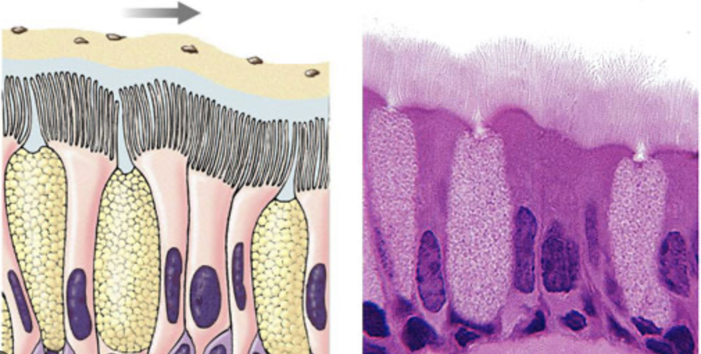 Los ________sirven como defensa (destrucción de microbios en moco)