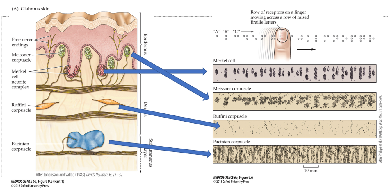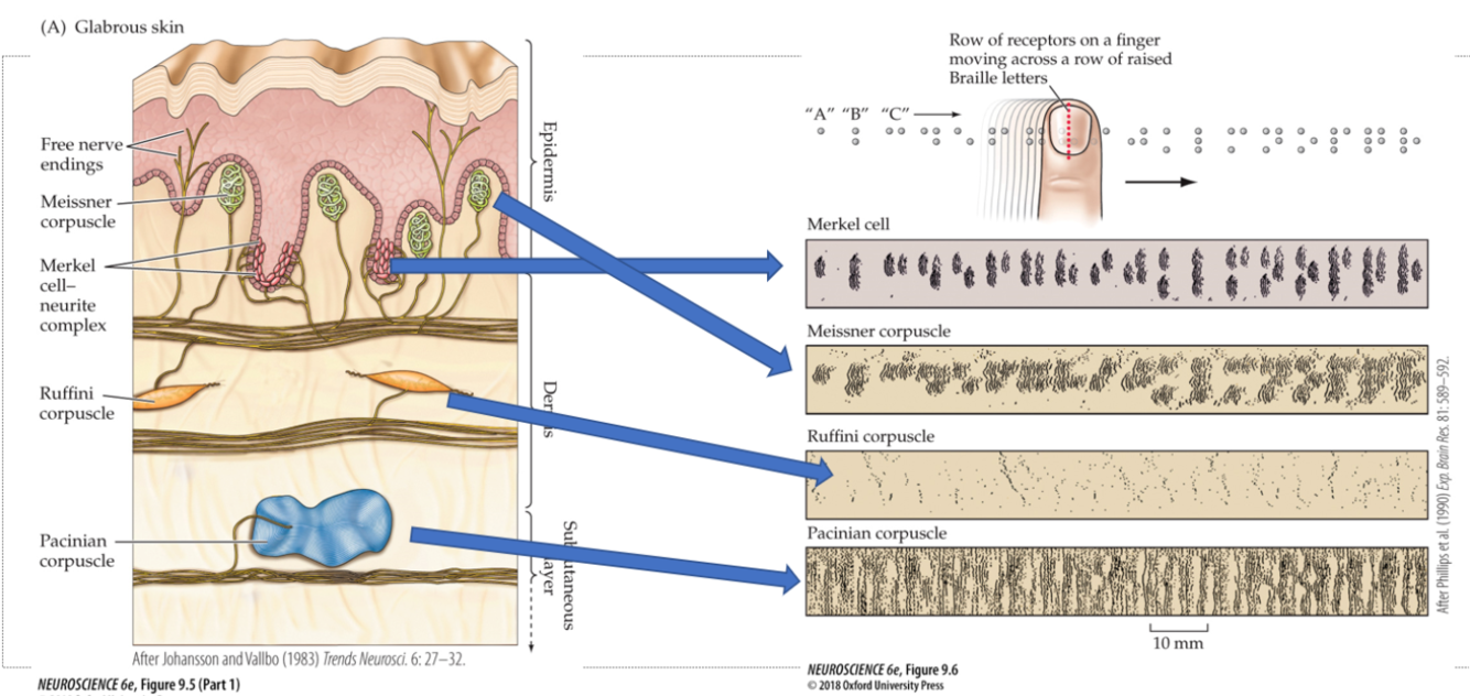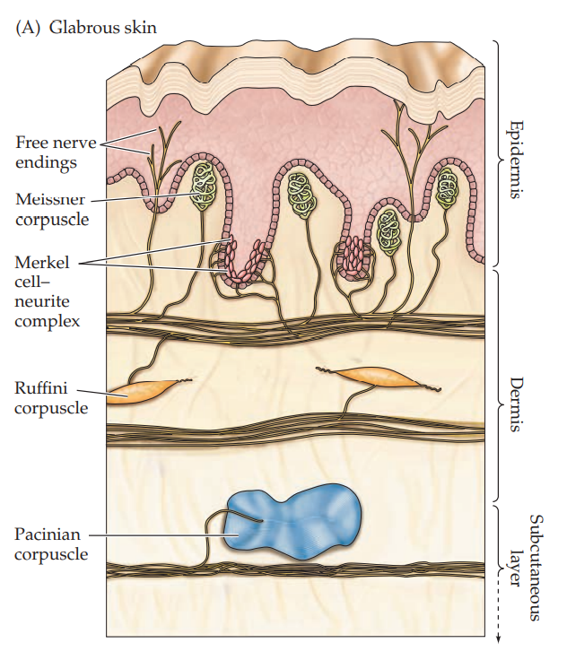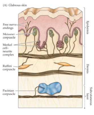 This picture depicts the different mechanoreceptors that are located in the skin.