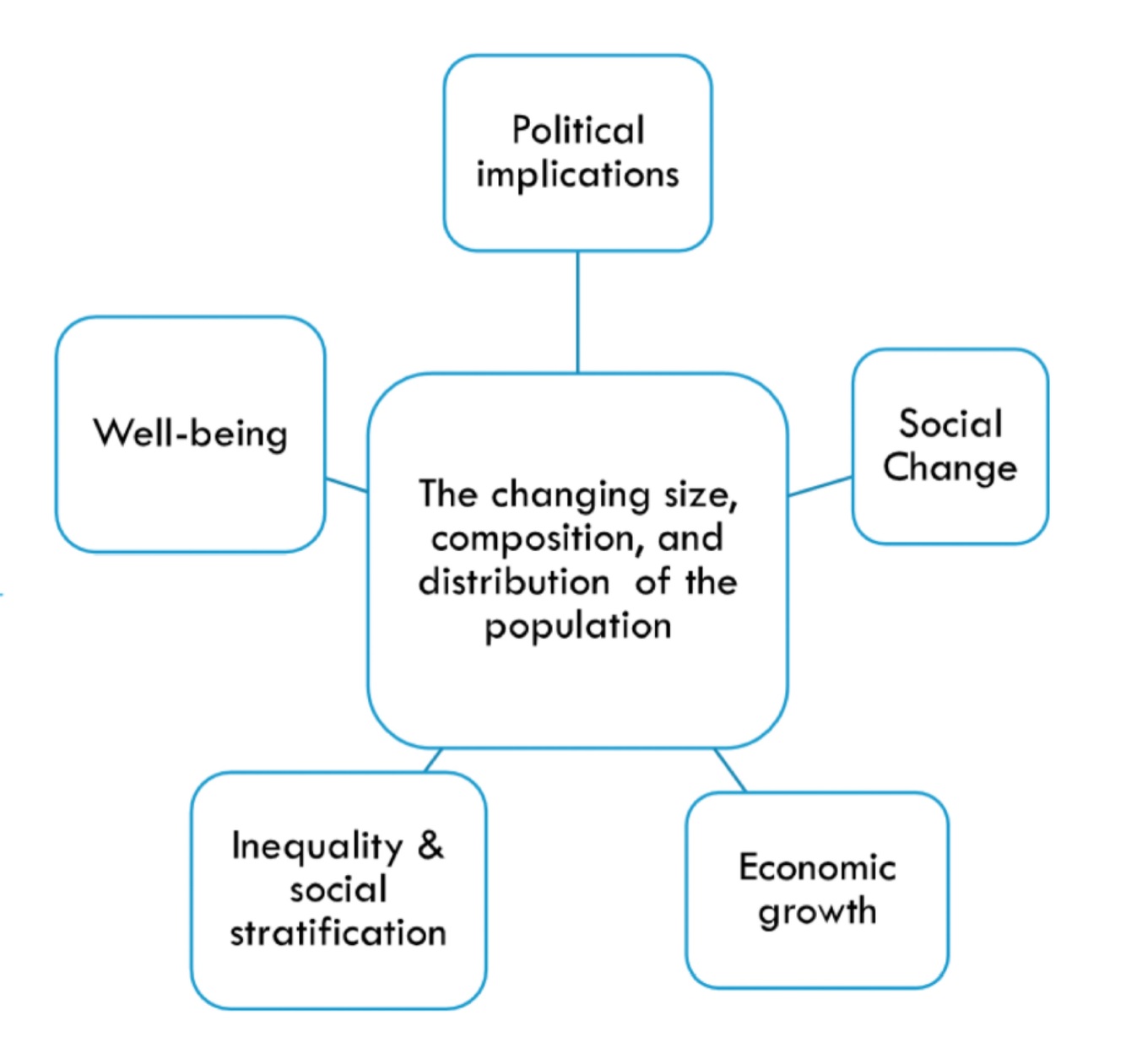 Population size/ population growth or decline/ population processes/ population spatial distribution/ population structure/ poulation characteristics
