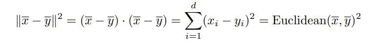The (squared) Euclidean distance between x and y