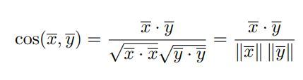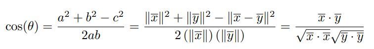 The cosine function between two vectors